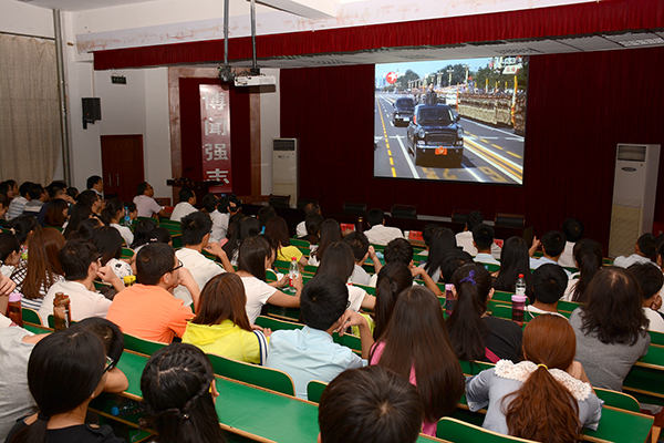 9月3日,中國人民抗日戰(zhàn)爭暨世界反法西斯戰(zhàn)爭勝利70周年紀(jì)念大會在北京隆重舉行。校領(lǐng)導(dǎo)與師生們一同觀看紀(jì)念活動實況,見證這一舉世矚目的歷史時刻,共同祝愿偉大祖國繁榮昌盛。