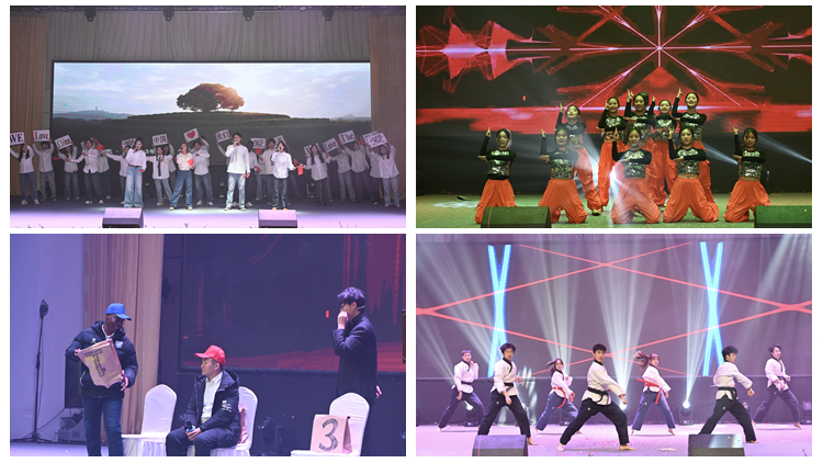 原創(chuàng)詩朗誦《遇見》,在時光長河的波光里回顧了學校發(fā)展歷程,歌頌了2024年逐光而行的不凡成就,激勵廣大師生與學校一道載夢飛翔。舞蹈《額爾古納河》展現(xiàn)了祖國山河的壯美與柔情,體現(xiàn)出人與自然的和諧共生。歌劇《沂蒙山》選段演繹了革命戰(zhàn)士大青山突圍、淵子崖戰(zhàn)役的崢嶸歷史?!段业拇髮W時代》通過逗趣的相聲表演生動再現(xiàn)了課堂奇遇、宿舍笑談的幽默時刻。明快靈動的小合唱《唱得幸福落滿坡》,用歌聲把觀眾帶到了豐收的田野中,看到了農民臉上洋溢的幸福笑容。二胡獨奏《戰(zhàn)馬奔騰》飽含著勇往直前的力量,訴說著英雄們的壯志豪情?!稇蚯?lián)唱》將眾多藝術形式巧妙聚集,唱念做打、五彩臉譜,一招一式盡顯東方之美。外籍教師羅杰一、王亮、艾瑪和國際創(chuàng)意課程學生合唱《We are the world》,用音樂展現(xiàn)了超越國界和文化的團結友愛。魔術表演《選擇》以絕妙的構思、精湛的手法為觀眾帶來無盡驚喜。舞蹈表演《醉春風》,在水墨煙雨中弄花影、戲春風,展現(xiàn)了草長鶯飛、杏花春雨的江南美景。《流行歌曲串燒》唱響青春之歌,給燦爛的成長歲月點燃生生不息的花火。《武動華章》將太極的柔、雙截棍的巧、跆拳道的剛匯聚一處,在動靜之間帶領觀眾走進武術世界。健身操舞《青春就這young》整齊劃一的動作、自信美麗的笑容,展現(xiàn)了商院學子積極向上的精神風貌。