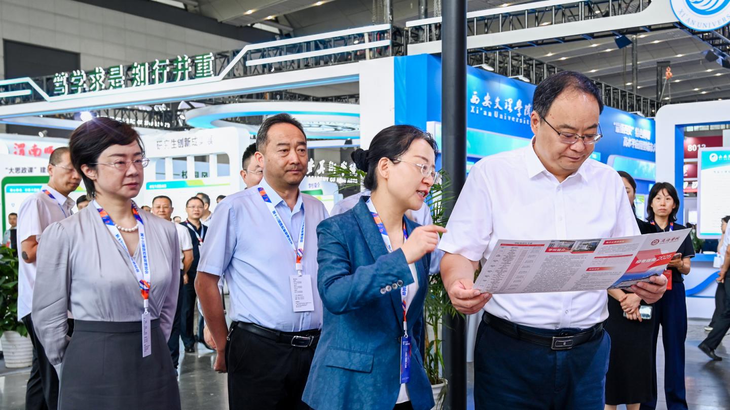 陜西省委教育工委書記、陜西省教育廳廳長王樹聲蒞臨我校展位參觀指導(dǎo),詳細(xì)了解我校近年來聚焦人工智能技術(shù)創(chuàng)新、秦嶺生態(tài)環(huán)境保護(hù)、生物資源開發(fā)利用、食品加工產(chǎn)業(yè)轉(zhuǎn)化等方面的科研成果。