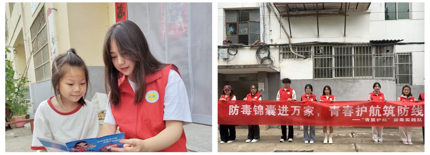 另一方面,各學(xué)院實踐團(tuán)聯(lián)合地方政法部門,深入校園、社區(qū)和居民小組,以“微宣講+法治實踐”融合模式開展禁毒宣教,織密全民禁毒防護(hù)網(wǎng),讓“健康人生,綠色無毒”理念深入人心。
