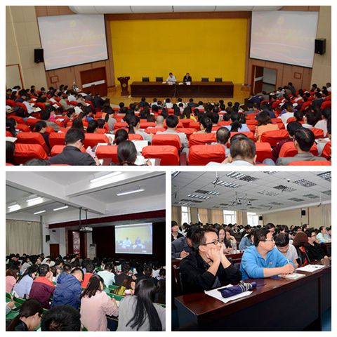 全校教職工黨員和學(xué)生黨員分別在圖書館二樓報(bào)告廳,一號(hào)教學(xué)樓2樓、3樓報(bào)告廳聆聽黨課。