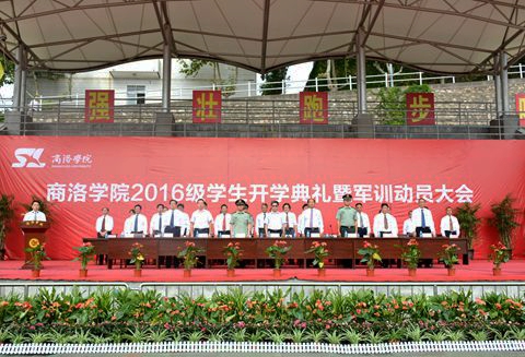 9月5日,天穹碧藍(lán),艷陽(yáng)高照,我校在體育場(chǎng)隆重舉行2016級(jí)學(xué)生開學(xué)典禮暨軍訓(xùn)動(dòng)員大會(huì)。商洛市委常委、市人民政府副市長(zhǎng)王華,校領(lǐng)導(dǎo)劉建林、范新會(huì)、魏書堂、劉寶盈,陸軍第47集團(tuán)軍某部政治部副主任張文平中校,陸軍第47集團(tuán)軍某部機(jī)步營(yíng)營(yíng)長(zhǎng)、商洛學(xué)院2016級(jí)學(xué)生軍訓(xùn)團(tuán)團(tuán)長(zhǎng)馬防少校,商洛市人民政府辦公室紀(jì)檢組長(zhǎng)郭安貴出席大會(huì)。校黨委書記、校長(zhǎng)劉建林作重要講話,并向承訓(xùn)教官授予2016級(jí)學(xué)生軍訓(xùn)團(tuán)團(tuán)旗。大會(huì)由校黨委副書記彭虎軍主持。各學(xué)院(部)黨、政主要負(fù)責(zé)人,學(xué)生處、教務(wù)處、招生就業(yè)處、宣傳部、校團(tuán)委、圖書館主要負(fù)責(zé)人及2016級(jí)新生參加了大會(huì)。