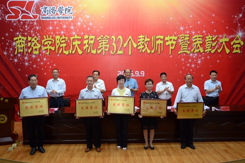在莊嚴的國歌聲中,慶祝暨表彰大會開始。校黨委副書記彭虎軍宣讀了表彰決定。出席大會的校領(lǐng)導(dǎo)為獲得先進集體榮譽稱號的化學(xué)工程與現(xiàn)代材料學(xué)院、生物醫(yī)藥與食品工程學(xué)院、語言文化傳播學(xué)院、教務(wù)處、教學(xué)評估中心5個單位,獲得優(yōu)秀教師榮譽稱號的冀玉良等21人,獲得優(yōu)秀教育工作者榮譽稱號的何念武等9人,獲得師德先進集體榮譽稱號的城鄉(xiāng)規(guī)劃與建筑工程學(xué)院、經(jīng)濟與管理學(xué)院、學(xué)生處3個單位,獲得師德先進個人榮譽稱號的黃元英等10人頒獎。
