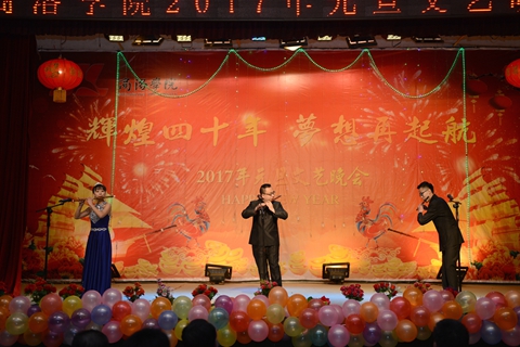 猴引康莊道,雞迎錦繡春。12月29日晚,我校隆重舉辦2017年元旦文藝晚會。省上有關(guān)部門領(lǐng)導(dǎo),商洛市有關(guān)領(lǐng)導(dǎo),我校部分合作單位負責(zé)人以及學(xué)校黨政領(lǐng)導(dǎo)與師生代表一同觀看了晚會。