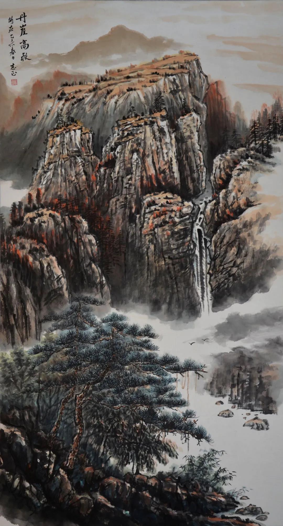 本次布展別出心裁,用原風(fēng)原貌的秦嶺鄉(xiāng)村建筑元素分隔空間,場(chǎng)景與作品相呼應(yīng),讓觀者身臨其境,一步一景。展出的60余件寫生作品和20余件創(chuàng)作作品,有巨制、小品、山水、人物、書法,筆觸疏密有致,筆墨生動(dòng)有趣,不僅可賞“天地之大美”,亦可探“一枝一葉總關(guān)情”,既有表現(xiàn)大美山河的十米長(zhǎng)卷《溪山清遠(yuǎn)圖》、飽含哲理的《丹崖高秋》《山那邊》等畫作,也有謳歌祖國美麗山河的《華山勝景圖》《晴云暖照漫川關(guān)》等作品。其中,小幅寫生作品畫面靜雅、恬淡,充滿平淡天真的氣氛,其他作品多體現(xiàn)北派山水的堂堂君子風(fēng)范,展現(xiàn)了大秦嶺氣勢(shì)磅礴的風(fēng)貌特質(zhì)。