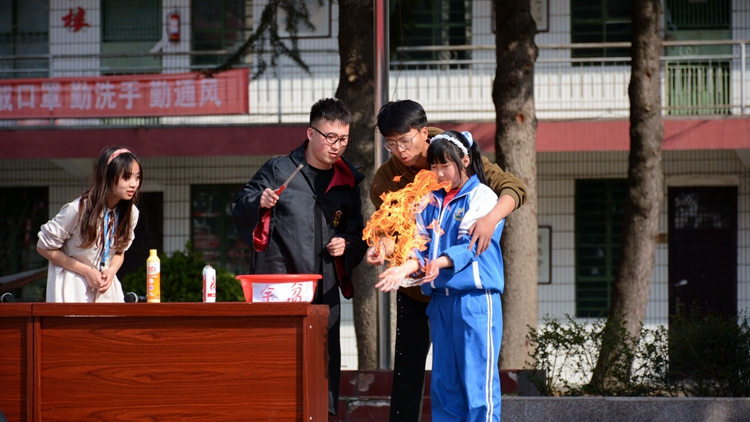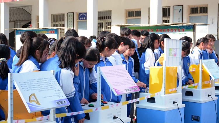 3月25日,我校聯(lián)合商洛市科協(xié)和丹鳳縣科協(xié),在丹鳳縣寺坪初級中學(xué)舉行人才服務(wù)團青少年科普教育活動,標志著我校第二十九屆“科技之春”宣傳月暨人才服務(wù)團科普下鄉(xiāng)活動正式啟動。商洛市科協(xié)副主席李文強、丹鳳縣科協(xié)主席賀燕、丹鳳縣人民政府教育督導(dǎo)室主任白寬虎出席活動,丹鳳縣寺坪初級中學(xué)校長彭家衛(wèi)主持活動。我校科技處負責人、人才服務(wù)團成員、“流動科技館”成員以及丹鳳縣寺坪鎮(zhèn)300余名中、小學(xué)師生參加了本場科普下鄉(xiāng)活動。