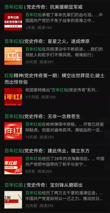 該欄目堅持每周推送一期新內(nèi)容,截至目前,總共推出6期,受到廣大團員青年熱烈追捧。同學們紛紛表示,走得再遠都不能忘記來時的路,“紅船精神”是中國革命精神之源,我們學習黨史首先要從學習“紅船精神”開始,學習中國共產(chǎn)黨開天辟地、敢為人先的首創(chuàng)精神,堅定理想、百折不撓的奮斗精神,立黨為公、忠誠為民的奉獻精神。在“兩個一百年”奮斗目標的交匯點,面對世界百年未有之大變局,我們尤為需要弘揚“紅船精神”,用“紅船精神”激勵和鼓舞青年一代奮發(fā)有為,積極投身中國特色社會主義偉大實踐,為中華民族偉大復興貢獻青春力量。