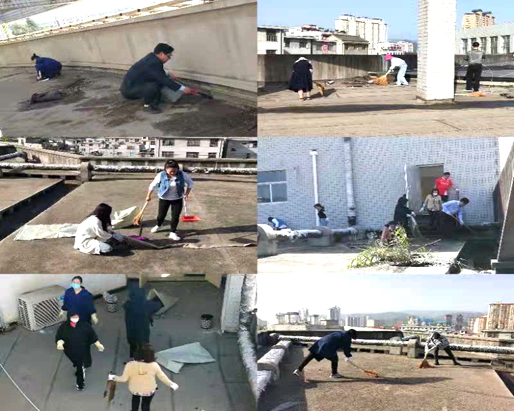 在圖書館黨政負(fù)責(zé)人的帶領(lǐng)下,40余名館員手持勞動(dòng)工具,全面清理了圖書樓樓頂堆積已久的磚頭、水泥塊、廢棄建筑材料,鏟走下水口附近雨水沖積的淤泥、垃圾,疏通了排水管道,清理了三十多立方垃圾,為師生營造了良好的閱讀及學(xué)習(xí)環(huán)境。
