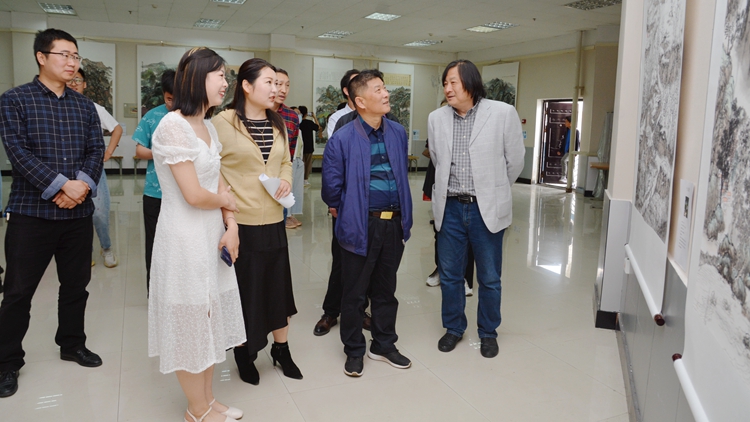 開(kāi)幕式結(jié)束后,范新會(huì)在相關(guān)負(fù)責(zé)人的陪同下參觀了畫(huà)展,并與創(chuàng)作學(xué)生進(jìn)行了親切交流。