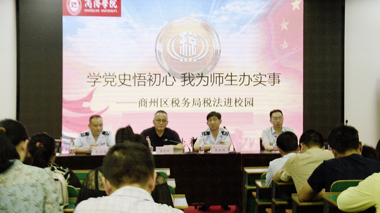 為深入開展“我為師生辦實(shí)事”實(shí)踐活動(dòng),向師生宣傳普及稅法知識(shí),提升教師稅收意識(shí),幫助畢業(yè)生了解創(chuàng)業(yè)就業(yè)扶持政策和各項(xiàng)減免稅收政策,6月1日下午 ,我校聯(lián)合商州區(qū)稅務(wù)局開展了“學(xué)黨史悟初心 我為師生辦實(shí)事”稅法宣傳進(jìn)校園活動(dòng)。商州區(qū)稅務(wù)局副局長(zhǎng)李俊利,稅務(wù)專家朱興華向師生講解稅務(wù)知識(shí)并現(xiàn)場(chǎng)答疑解惑。校財(cái)務(wù)處處長(zhǎng)李云剛、科技處副處長(zhǎng)郭耀東,學(xué)生處相關(guān)負(fù)責(zé)人、各二級(jí)學(xué)院教師代表及畢業(yè)生代表100余人參加活動(dòng)。