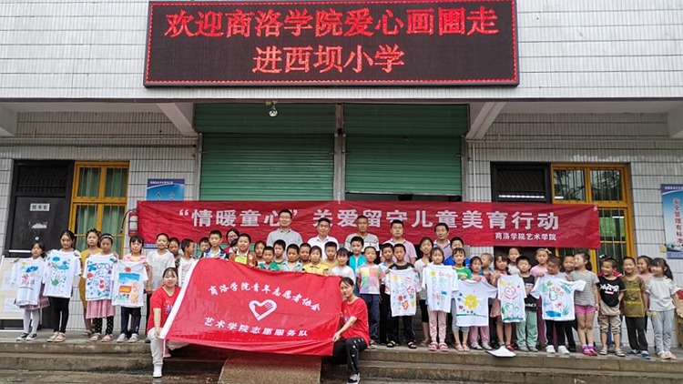 7月2日,我校承擔的公益項目“鄉(xiāng)村愛心畫圃”走進了洛南縣保安鎮(zhèn)西壩小學,項目指導教師、藝術學院教師李斌、王淦卿和李萍及項目成員參加活動。