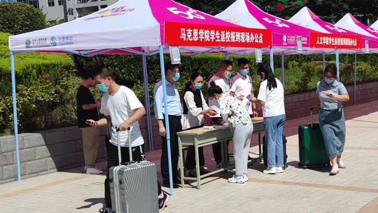 學校高度重視此次演練,制定了詳細的演練方案,模擬設置了學生入校、學生報到、應急情況處理、核酸檢測等多個場景,對學生報到過程中的重點環(huán)節(jié)和風險點、防控點進行應急實戰(zhàn)演練。演練自校門外開始,參演學生以1米以上間隔依次進行掃描健康碼、身份核驗、查驗48小時內核酸單、出示通信大數(shù)據(jù)行程卡、更換口罩、測量體溫、消毒等環(huán)節(jié)后通過測溫門進入校門,在學院接待點進行二次體溫檢測、核驗疫苗接種后統(tǒng)一前往玉蘭廣場進行核酸檢測。門崗處還設置了臨時隔離點,為體溫異常的報到新生做進一步檢測處理。