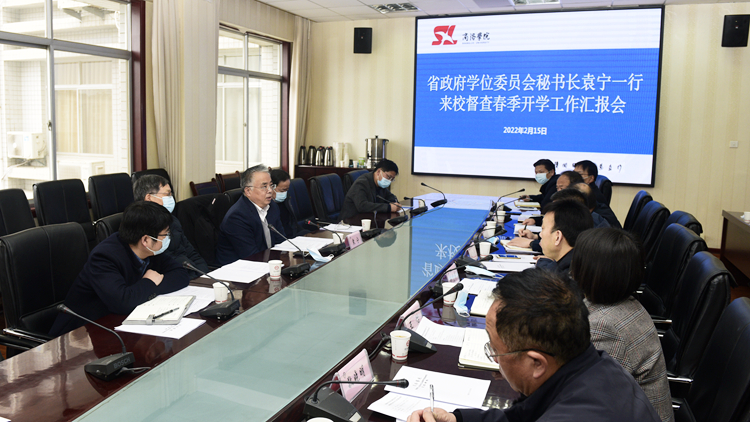 2月15日上午,陜西省政府學位委員會秘書長袁寧率督導組一行6人來校檢查指導春季開學工作。校長范新會主持召開工作匯報會,黨委副書記彭虎軍,副校長郭瑾,商洛市教育局副局長龔勝利出席會議。