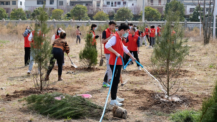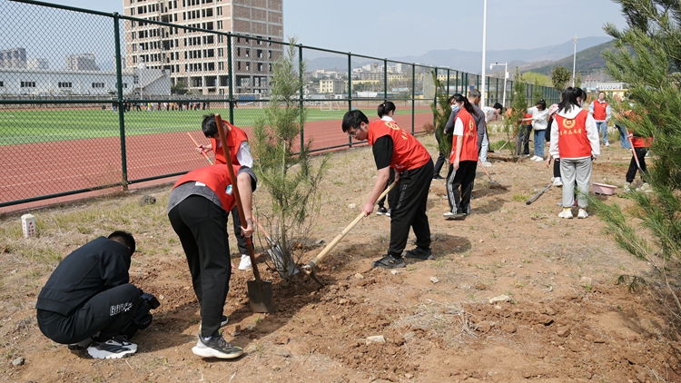 春到人間草木知,正值一年添綠時。在第44個全民義務(wù)植樹節(jié)來臨之際,我校黨員干部師生廣泛參與義務(wù)植樹活動。3月11日下午,校領(lǐng)導(dǎo)范新會、彭虎軍、劉勇、劉寶盈、王新軍、郭瑾與青年志愿者們一起來到丹江校區(qū),為校園再添綠裝。黨委辦公室、發(fā)展規(guī)劃處、后勤保障處、丹江校區(qū)管理處等部門職工和團委青年志愿者協(xié)會近百名師生參加活動。