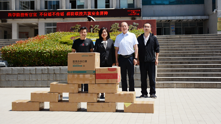 6月1日上午,商洛市衛(wèi)健委副主任汶希來我校調(diào)研指導(dǎo)疫情防控工作,并向我校捐贈(zèng)一批洗手液、口罩等防疫物資。副校長郭瑾代表學(xué)校接受捐贈(zèng)。市衛(wèi)健委法規(guī)科副科長呂杭東陪同調(diào)研。