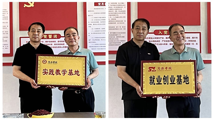 在陜西煜美生物科技有限公司,王新軍和李向民代表校企雙方簽署了實踐教學(xué)基地和大學(xué)生就業(yè)創(chuàng)業(yè)協(xié)議,共同為“大學(xué)生就業(yè)創(chuàng)業(yè)基地”和“實踐教學(xué)基地”授牌。王新軍在座談中介紹了我?;厩闆r、辦學(xué)定位、辦學(xué)特色、學(xué)科專業(yè)建設(shè)與應(yīng)用型人才培養(yǎng)、省、市級科技特派員服務(wù)地方等情況。李向民對王新軍及根植地方服務(wù)團隊一行的來訪表示歡迎,并介紹了公司的生產(chǎn)經(jīng)營情況和目前存在的主要問題。智慧農(nóng)業(yè)團隊負(fù)責(zé)人劉愛軍介紹了商洛學(xué)院智慧農(nóng)業(yè)根植地方服務(wù)團隊成員組成、服務(wù)內(nèi)容及研究方向。雙方均表示,將以此次活動為契機,在產(chǎn)業(yè)發(fā)展、鄉(xiāng)村振興、人才培養(yǎng)等領(lǐng)域開展廣泛合作,切實推動校企合作走向深入,實現(xiàn)合作共贏。