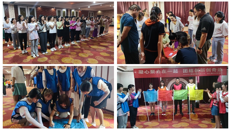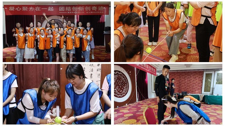 團建活動分為《破冰游戲》《團隊密碼》《挑戰(zhàn)平行線》《智勇闖三關(guān)》和《生命動力圈》五個環(huán)節(jié)。在活動中教職工們通力協(xié)作、積極探索、激發(fā)了個人潛能,增強自信和自制能力,培養(yǎng)了創(chuàng)造性思維,熔煉了團隊精神。