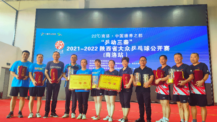 本次比賽由陜西省體育局主辦,陜西省乒乓球羽毛球網(wǎng)球運(yùn)動(dòng)管理中心、商洛市體育局承辦,威贏賽事運(yùn)營(yíng)有限公司組織運(yùn)營(yíng),商洛市體育總會(huì)、陜西智慧星耀實(shí)業(yè)有限公司協(xié)辦。比賽分青年組、中年組、老年組三個(gè)組別,設(shè)混合團(tuán)體比賽項(xiàng)目(包含:男單、女單、男雙、女雙、男單)五個(gè)項(xiàng)目。最終山陽(yáng)縣正陽(yáng)國(guó)球俱樂(lè)部、市乒協(xié)代表隊(duì)、商南縣代表隊(duì)分別獲得青年組、中年組、老年組冠軍,商南縣代表隊(duì)、鎮(zhèn)安縣代表隊(duì)、市乒協(xié)代表隊(duì)獲得青年組、中年組、老年組亞軍,柞水縣代表隊(duì)、商南縣代表隊(duì)、鎮(zhèn)安縣代表隊(duì)獲得青年組、中年組、老年組季軍。我校副校長(zhǎng)王新軍、體育教學(xué)研究部主任黃顯忠、陜西智慧星耀實(shí)業(yè)有限公司董事長(zhǎng)楊艷分別為一等獎(jiǎng)、二等獎(jiǎng)、優(yōu)秀組織獎(jiǎng)?lì)C獎(jiǎng)。