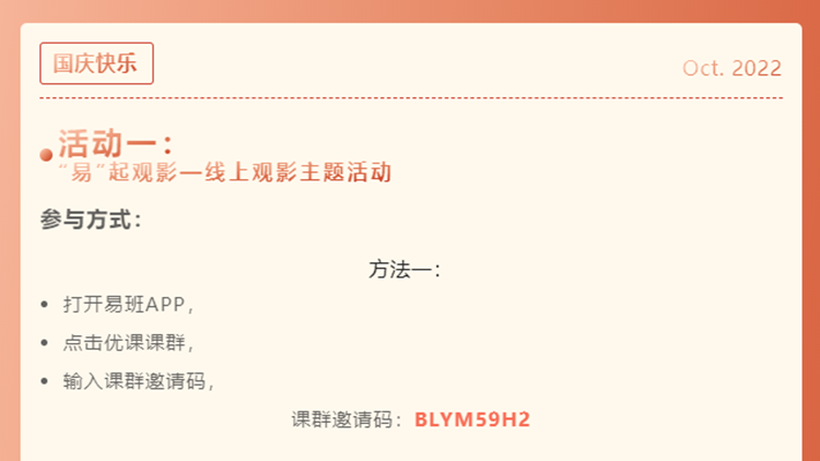 學(xué)生處通過易班平臺舉辦了易”起線上觀影、“易”句告白祖國、“易”起學(xué)習(xí)優(yōu)課等活動,邀請全校師生觀看紅色電影、抒發(fā)愛國之情、參與“喜迎黨的二十大”優(yōu)課課群答題,重溫黨的百年征程波瀾壯闊,感受百年黨史篳路藍(lán)縷和百年初心歷久彌堅(jiān)。