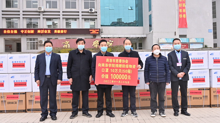 11月29日,商洛市慈善協(xié)會(huì)常務(wù)副會(huì)長(zhǎng)兼秘書長(zhǎng)陳知武代表協(xié)會(huì)向我校捐贈(zèng)10萬只醫(yī)用口罩,再次為我校疫情防控工作貢獻(xiàn)力量。校黨委副書記彭虎軍代表學(xué)校接受捐贈(zèng)。此前,市慈善協(xié)會(huì)曾于今年年初向我校捐贈(zèng)過一批口罩等防疫物資。