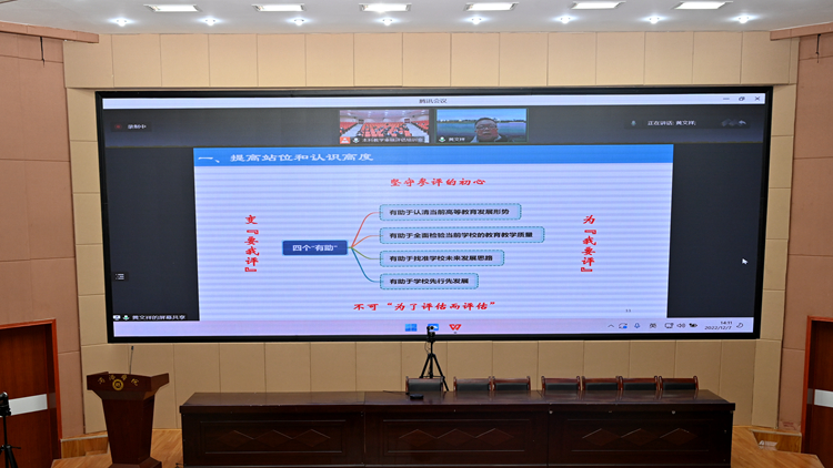 12月7日下午,我校在圖書館二樓報告廳召開本科教育教學(xué)審核評估工作培訓(xùn)會,邀請評估專家、常熟理工學(xué)院教學(xué)質(zhì)量管理處處長黃文祥做了題為“新一輪審核評估學(xué)校評建實踐”的線上報告。各職能部門主要負(fù)責(zé)人,二級學(xué)院(部)黨、政主要負(fù)責(zé)人參加了培訓(xùn)會。會議由副校長劉寶盈主持。