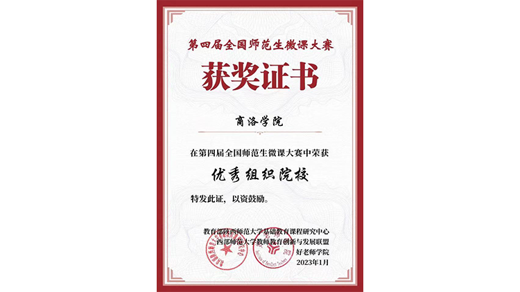 近日,第四屆全國(guó)師范生微課大賽結(jié)果公布。我校師生獲得各類(lèi)獎(jiǎng)項(xiàng)13項(xiàng),其中學(xué)生榮獲特等獎(jiǎng)1項(xiàng)、一等獎(jiǎng)2項(xiàng)、二等獎(jiǎng)8項(xiàng),人文學(xué)院?jiǎn)探鸸蠋煒s獲優(yōu)秀指導(dǎo)教師,學(xué)校榮獲優(yōu)秀組織單位獎(jiǎng)。這是我校參與此項(xiàng)賽事以來(lái)首次榮獲優(yōu)秀組織獎(jiǎng),實(shí)現(xiàn)了學(xué)校集體獎(jiǎng)、學(xué)生獲獎(jiǎng)等級(jí)和獲獎(jiǎng)總數(shù)多項(xiàng)突破。