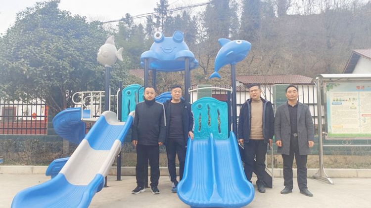 陽春三月,草長鶯飛。今年開春以來,我校駐鎮(zhèn)安縣蒿坪村鄉(xiāng)村振興工作隊積極開展幫扶工作,入戶走訪切實解決群眾需求,謀篇布局助力鄉(xiāng)村教育新發(fā)展。在調研走訪中,工作隊第一書記許博,隊員常波、鞏俊龍了解到蒿坪村教學點的幼兒娛樂設施簡陋單一,安全系數也較低,不利于幼兒課間休閑和健康成長。為解決實際問題,工作隊多方聯(lián)系資源,主動為村教學點捐贈價值6000元的大型滑梯一臺。