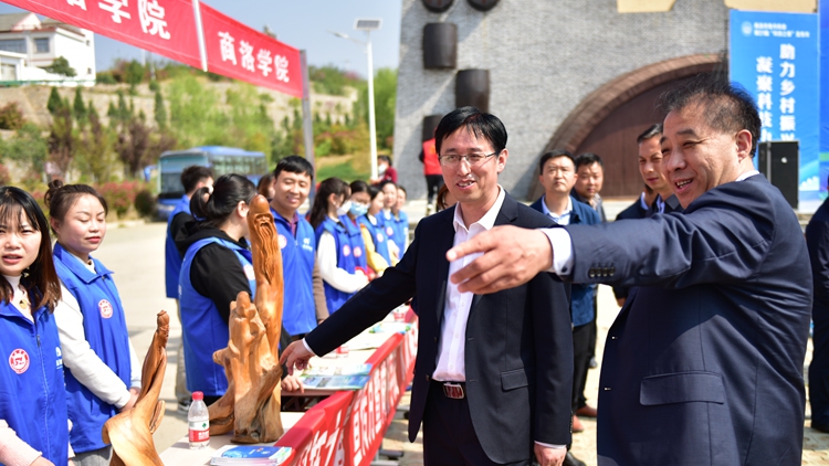 4月1日,以“凝聚科技力量,助力鄉(xiāng)村振興”為主題的商洛市第三十一屆“科技之春”宣傳月暨商洛學(xué)院“雙百工程”啟動儀式主場示范活動在丹鳳縣棣花鎮(zhèn)舉辦。商洛市委常委、副市長孫舉恒,我校副校長王新軍,商洛市科協(xié)主席黃恒林,丹鳳縣委副書記王小寧出席活動。我校科技處、藝術(shù)學(xué)院相關(guān)負責(zé)人,45名志愿者、丹鳳縣25家成員單位以及500余名群眾參加活動。