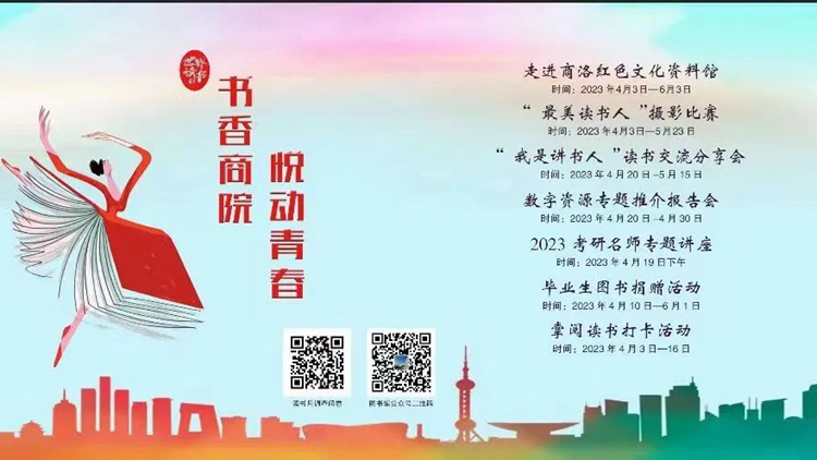 人間最美四月天,正是讀書好時(shí)節(jié)。為了讓更多師生讀者參與到閱讀中來(lái),形成愛(ài)讀書、善讀書、讀好書的深厚氛圍,近日,圖書館組織開(kāi)展的2023年“書香商院 悅動(dòng)青春”讀書月活動(dòng)正式拉開(kāi)帷幕。
