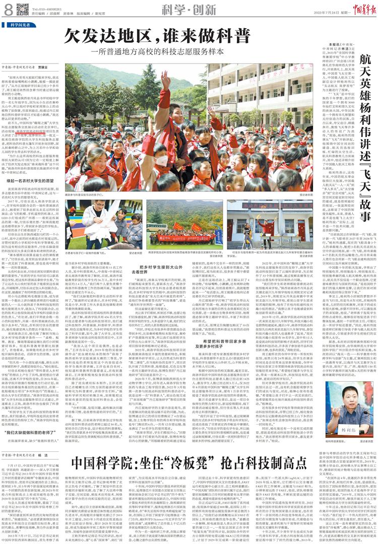 7月24日,《中國青年報》第8版以《欠發(fā)達地區(qū),誰來做科普一所普通地方高校的科技志愿服務(wù)樣本》為題,對我校流動科技館科技志愿服務(wù)項目進行了專題報道。