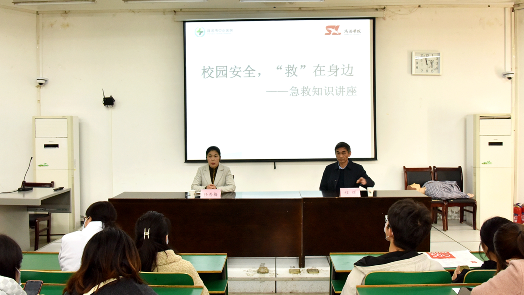 為深入貫徹落實習近平總書記關于校園安全重要指示精神,強化學校應急救護知識普及,提高師生安全意識與急救能力,11月22日下午,我校邀請商洛市中心醫(yī)院急診科主任程輝來校為師生作《校園安全,“救”在身邊》為主題的急救知識講座。2023級輔導員,學生代表,校醫(yī)院所有醫(yī)務人員及部分自愿參會的師生共計200余人參加講座。講座由校醫(yī)院院長任秀梅主持。