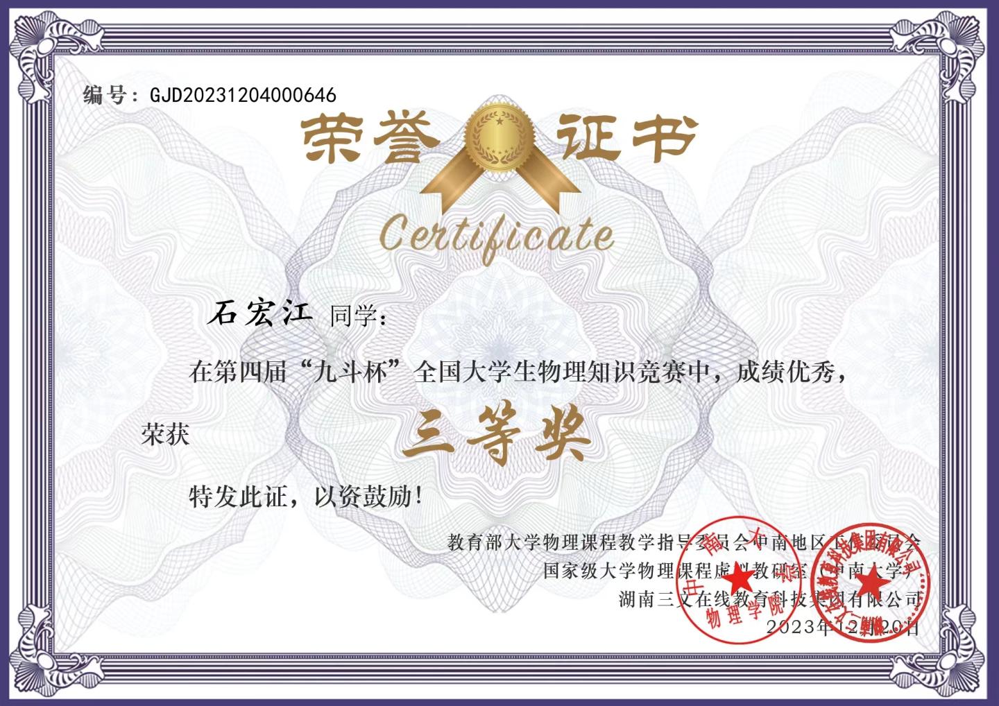 近日,由教育部大學物理課程教學指導委員會中南地區(qū)工作委員會、國家級大學物理課程虛擬教研室主辦的第四屆“九斗杯”全國大學生物理知識競賽結果揭曉。我校電信學院學生石宏江、閆露、楊悅、賀楊在決賽中喜獲全國三等獎。