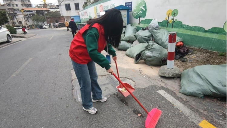 負責(zé)清理垃圾的實踐隊員身著紅馬甲,手拿掃帚、垃圾袋等清潔工具,秉持著“不漏掉任何一個死角”的原則,對小區(qū)路面、綠化帶內(nèi)的白色垃圾、雜草枯樹枝等全面清除打掃,對亂張貼的小廣告進行清理,用自己的行動為社區(qū)環(huán)境貢獻自己的微薄之力。與此同時,我們還對居民進行宣傳教育,進行垃圾分類與清理相關(guān)知識的科普,呼吁居民群眾保持良好的生活習(xí)慣,共同維護干凈整潔的生活環(huán)境。