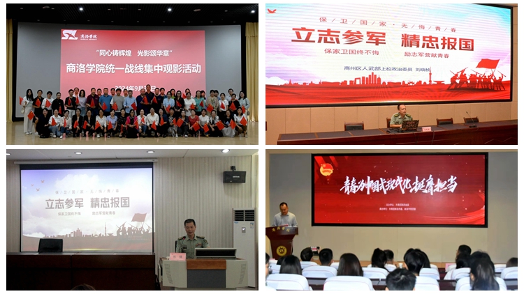 此外,宣傳部舉辦了2024年“學(xué)憲法 講憲法”演講大賽校級(jí)決賽,推送的生物學(xué)院學(xué)生楊昕萌在省賽中榮獲優(yōu)秀獎(jiǎng)。統(tǒng)戰(zhàn)部組織各民主黨派成員、無黨派人士、黨外知識(shí)分子以及各民族師生代表觀看紅色電影《志愿軍:雄兵出擊》,進(jìn)一步鑄牢中華民族共同體意識(shí)教育,不斷夯實(shí)統(tǒng)一戰(zhàn)線共同思想政治基礎(chǔ)。學(xué)生處舉辦了2024級(jí)新生國(guó)防教育專題講座,邀請(qǐng)商州區(qū)人武部上校政委劉曉楨、上校部長(zhǎng)陳強(qiáng)為學(xué)生作愛國(guó)主義和國(guó)防安全教育專題報(bào)告。校團(tuán)委承辦了“青春為中國(guó)式現(xiàn)代化挺膺擔(dān)當(dāng)”主題宣講活動(dòng),由咸陽(yáng)師范學(xué)院馬克思主義學(xué)院院長(zhǎng)曾永安、西北大學(xué)歷史學(xué)院教授蘭梁斌、中國(guó)航天科技集團(tuán)有限公司第四研究院七四一六廠團(tuán)委書記趙子凱、陜西電信農(nóng)業(yè)農(nóng)村事業(yè)部產(chǎn)品總監(jiān)張贊帶領(lǐng)我校青年學(xué)生學(xué)習(xí)習(xí)仲勛同志在馬欄的革命事跡,深入探討秦嶺在中華文明發(fā)展中的重要地位,了解中國(guó)航空工業(yè)的發(fā)展歷程,分享農(nóng)業(yè)科技創(chuàng)新領(lǐng)域的實(shí)踐經(jīng)驗(yàn)。