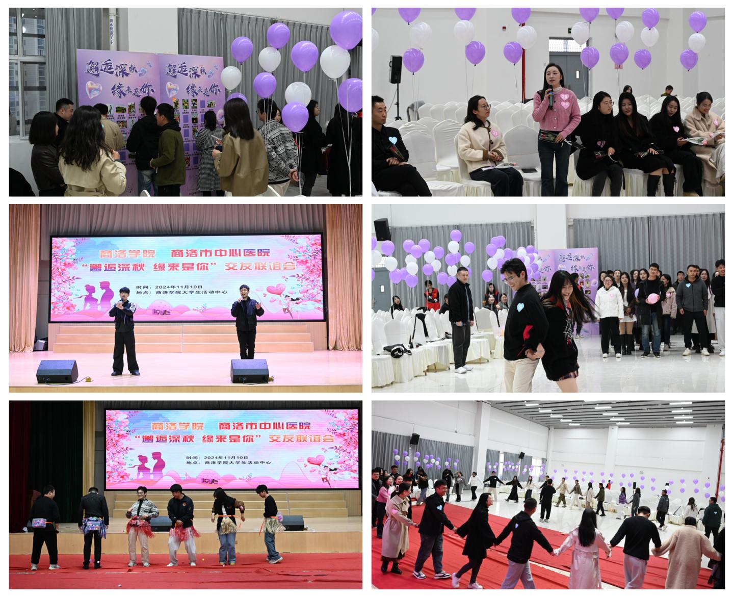 為進(jìn)一步加強(qiáng)對(duì)青年職工的關(guān)愛,搭建真誠(chéng)、友好的優(yōu)質(zhì)交友婚戀平臺(tái),11月10日,校工會(huì)、團(tuán)委與商洛市中心醫(yī)院聯(lián)合舉辦“邂逅深秋 緣來是你”青年職工交友聯(lián)誼會(huì)。商洛市中心醫(yī)院工會(huì)、黨群部、培訓(xùn)中心以及我校工會(huì)相關(guān)負(fù)責(zé)人與40名單身青年職工共同參與此次活動(dòng)。
