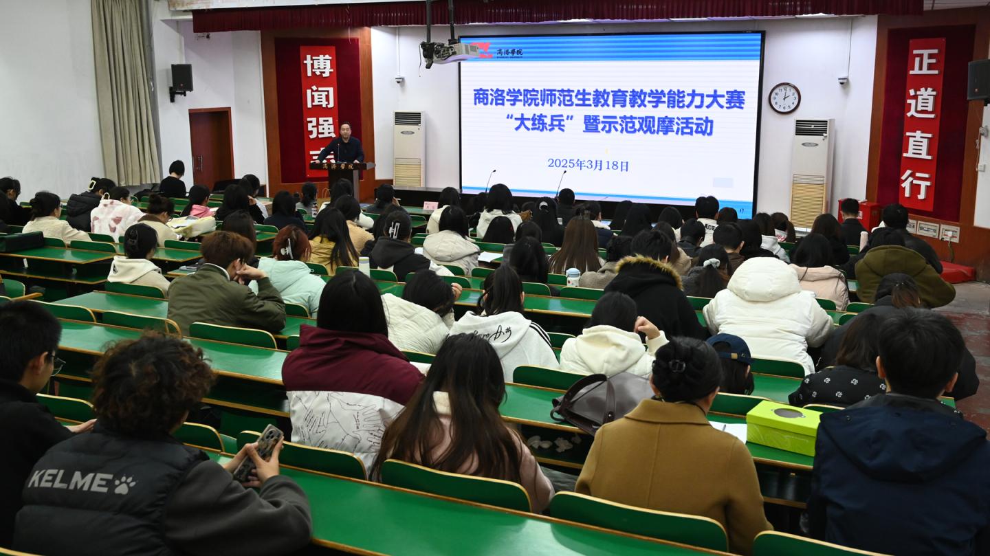 為全面提升師范生教育教學(xué)能力,全力做好陜西高等學(xué)校師范生教育教學(xué)能力大賽備賽工作,推動(dòng)師范專業(yè)人才培養(yǎng)質(zhì)量,3月18日,我校舉辦師范生教育教學(xué)能力大賽“大練兵”暨示范觀摩活動(dòng)。副校長(zhǎng)張向東出席活動(dòng)并作動(dòng)員講話。教務(wù)處負(fù)責(zé)人、相關(guān)師范專業(yè)教學(xué)院長(zhǎng)、省級(jí)決賽入圍選手及指導(dǎo)教師、各師范專業(yè)學(xué)生代表共130余人參加了活動(dòng)?;顒?dòng)由教務(wù)處處長(zhǎng)王怡主持。