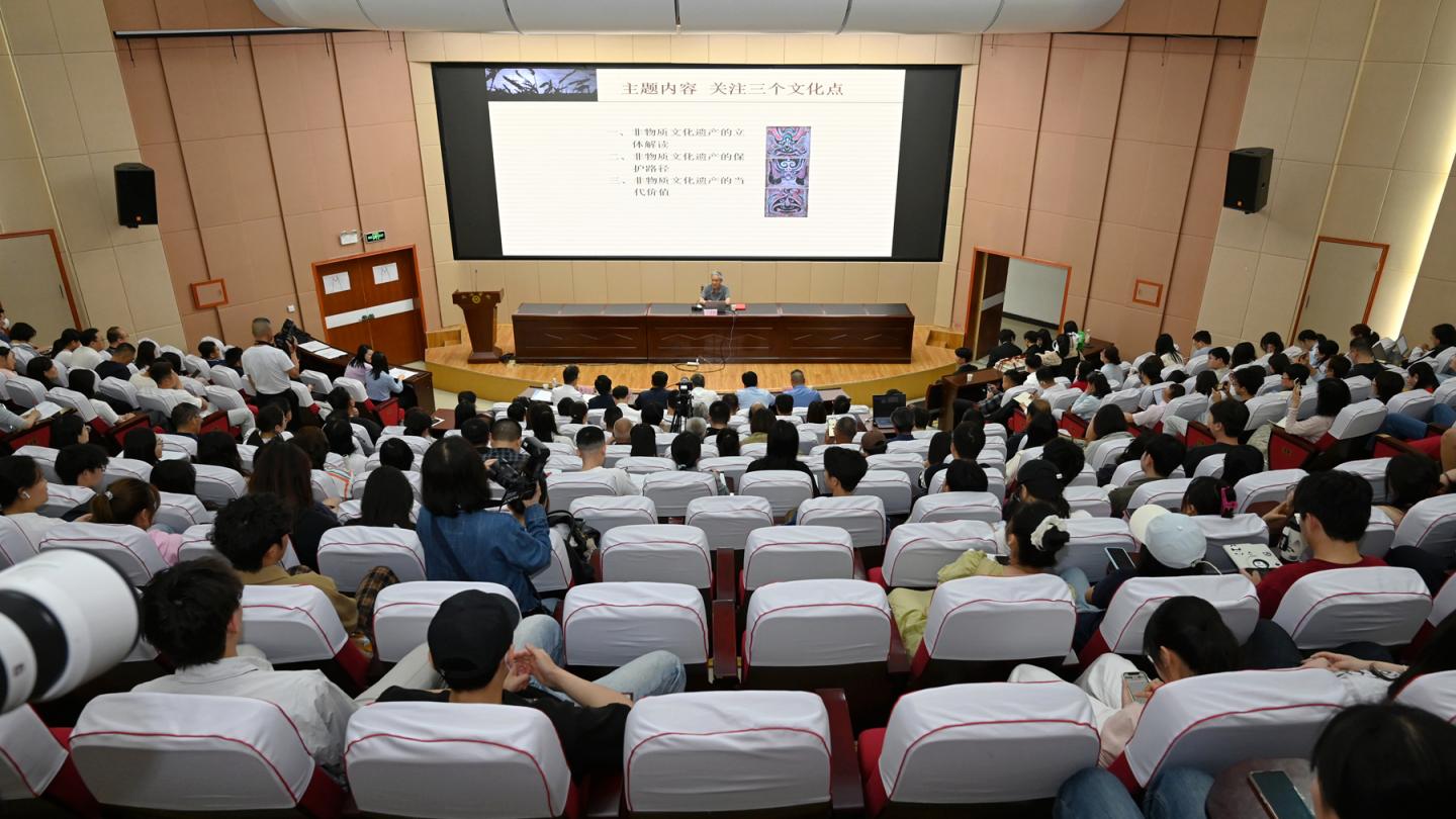 為深入挖掘非物質(zhì)文化遺產(chǎn)在高校文化傳播、藝術(shù)教育及服務(wù)地方中的潛能,推動非遺文化創(chuàng)造性轉(zhuǎn)化與創(chuàng)新性發(fā)展,5月14日下午,學(xué)校舉辦“非物質(zhì)文化遺產(chǎn)”進(jìn)校園專題報告會,邀請陜西省非物質(zhì)文化遺產(chǎn)保護(hù)、研學(xué)及傳承領(lǐng)域?qū)<倚藿蚪淌跒閹熒鲗鰣蟾?。校黨委副書記劉寶盈出席報告會并為修建橋教授頒發(fā)兼職教授及藝術(shù)學(xué)院“非物質(zhì)文化遺產(chǎn)科研團(tuán)隊”研究員聘書。