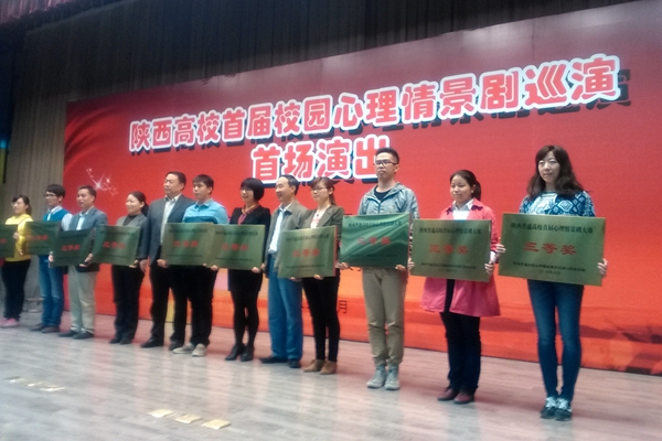 校園心理情景劇以激發(fā)積極潛能,釋放消極情緒,治愈人際創(chuàng)傷,關(guān)愛自我生命,促進(jìn)幸福成長為主旨。校園情景劇根據(jù)大學(xué)生活中真實(shí)故事改編,將校園生活搬上舞臺(tái),將隱性矛盾和顯性矛盾以故事情景呈現(xiàn),這種鏡子效應(yīng)容易引起大學(xué)生心理共鳴,達(dá)到普及心理健康知識(shí)的目的。本次優(yōu)秀校園心理情景劇評(píng)選活動(dòng)在各高校積極推薦的基礎(chǔ)上,經(jīng)過專家評(píng)審和觀眾打分投票,產(chǎn)生優(yōu)秀劇目進(jìn)行表彰并在我省各高校進(jìn)行巡演。中共陜西省委高教工委副書記、省高教紀(jì)工委書記郝利生參加了本次表彰大會(huì)并對(duì)獲獎(jiǎng)?wù)弑硎玖俗YR。