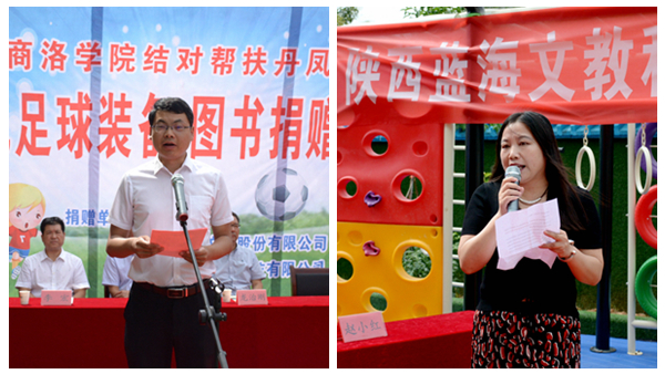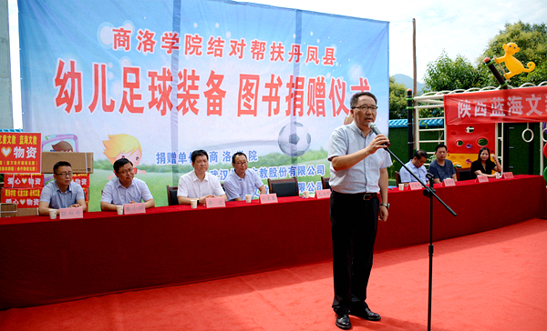 楊思飛代表丹鳳縣委、縣政府向關(guān)愛丹鳳縣幼兒教育的領(lǐng)導(dǎo)和愛心人士表示感謝,他在講話中指出,本次公益捐贈活動,是商洛學(xué)院各位領(lǐng)導(dǎo)組織開展“雙百工程”、踐行“聯(lián)幫聯(lián)扶”的具體行動,也是全社會參與大扶貧的生動體現(xiàn)。他表示,商洛學(xué)院與丹鳳縣的交流交融源遠(yuǎn)流長,近年來在學(xué)前教育發(fā)展論壇、少兒足球培訓(xùn)、扶智扶志等方面給予了丹鳳縣有大的支持和幫助,希望學(xué)校一如既往地關(guān)注關(guān)心丹鳳的發(fā)展,持續(xù)深化戰(zhàn)略合作,對丹鳳縣教育扶貧工作給予更多更大的支持,助力丹鳳縣順利打贏脫貧攻堅戰(zhàn)。