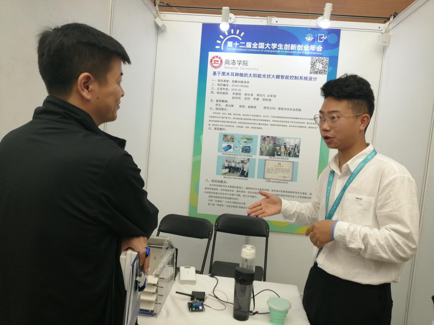 按照教育部、省教育廳有關(guān)要求,學(xué)校從6月開(kāi)始籌備參賽事宜,經(jīng)過(guò)校內(nèi)遴選、指導(dǎo)打磨,教育廳層層選拔、教育部終審評(píng)定,由我校電子信息與電氣工程學(xué)院教師袁訓(xùn)鋒、楊燕指導(dǎo),學(xué)生楊化俊、李娜、胡桂馳等完成的創(chuàng)新創(chuàng)業(yè)項(xiàng)目作品“基于黑木耳種植的太陽(yáng)能光伏大棚智能控制系統(tǒng)設(shè)計(jì)”,最終成功入圍年會(huì)展示交流項(xiàng)目,并在現(xiàn)場(chǎng)展示中獲得與會(huì)專家和師生的廣泛好評(píng)。
