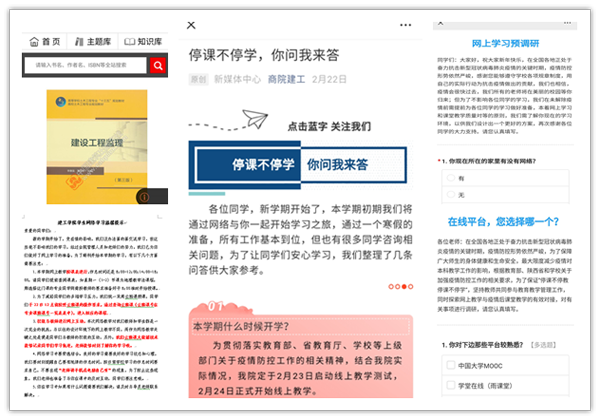 三周以來,建工學(xué)院所有課程線上教學(xué)順利進行,廣大教師克服各種技術(shù)難題精心設(shè)計每一節(jié)課程,課前叮囑、課中“連麥”、課后督促,學(xué)生主動“響應(yīng)”、積極配合,師生攜手共同成長、快樂學(xué)習(xí),成為此次“空中課堂”別樣的一道“風(fēng)景”。土木1921班杜宇航講到:豐盛的網(wǎng)絡(luò)教學(xué)資源、溫馨的課前提示、獨特的網(wǎng)絡(luò)教學(xué)模式、流暢的在線互動和無微不至的生活關(guān)懷,使我們徜徉在有“溫度”的網(wǎng)絡(luò)學(xué)習(xí)之中?!锻聊竟こ淌┕ぜ夹g(shù)》教師曹蕾老師講到:“在傳統(tǒng)線下課堂上,一次提問,只能有部分學(xué)生作答。在線上課堂里,一次發(fā)問,瞬間迎來全體學(xué)生的傾情回應(yīng),那種隔著屏幕都能感覺到的熱情令人淚目,學(xué)生主動學(xué)習(xí),師生高效互動,我們追求多年的目標(biāo),在互聯(lián)網(wǎng)的云端里變?yōu)楝F(xiàn)實?!?/p>