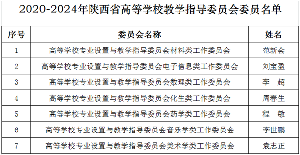 近日,陜西省教育廳公布了2020-2024年陜西省高等學(xué)校教學(xué)指導(dǎo)委員會委員名單,我校7名教師成功入選。