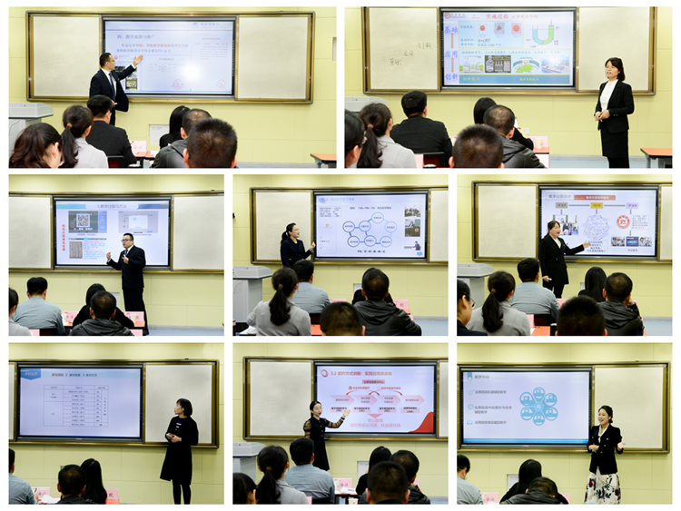 本屆大賽經(jīng)過院級初賽選拔,共選出正高組、副高組、中級及以下組8位教師進入校級決賽。決賽成績由課堂教學實錄視頻、教學創(chuàng)新成果報告、教學設計創(chuàng)新匯報三部分按比例合成,得出競賽最終成績。校級決賽采取現(xiàn)場評審方式進行,參賽教師結合教學大綱與教學實踐,分別進行了12分鐘的教學設計創(chuàng)新匯報和8分鐘的專家問答交流。