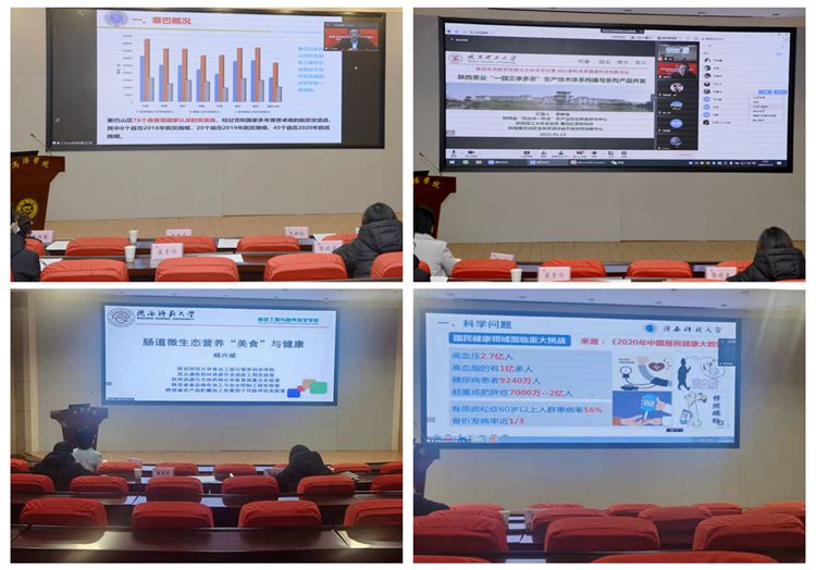 學??萍继?、健康管理學院負責人參加論壇。健康管理學院、生物醫(yī)藥與食品工程學院相關學科專業(yè)教師、學生以及西北農(nóng)林科技大學、西北大學、陜西理工大學部分研究生在線聽取了報告。