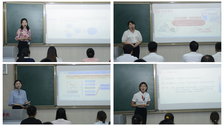 在校級決賽環(huán)節(jié),8位選手分別進行了5分鐘的說課和15分鐘的現(xiàn)場教學(xué)展示。參賽教師們依據(jù)課程特點,深入挖掘課程蘊含的思想政治教育資源元素,有機融入家國情懷、法治意識、社會責(zé)任、人文精神、仁愛之心等思政元素,展示了各具特色的教學(xué)設(shè)計和教學(xué)風(fēng)采,生動體現(xiàn)了知識傳授與價值引領(lǐng)相統(tǒng)一、教書與育人相統(tǒng)一、言傳和身教相統(tǒng)一、潛心問道和關(guān)注社會相統(tǒng)一、學(xué)術(shù)自由和學(xué)術(shù)規(guī)范相統(tǒng)一的特點。最終電信學(xué)院教師李亞文榮獲“課程思政教學(xué)標(biāo)兵”榮譽稱號,人文學(xué)院教師劉玉婷、健康學(xué)院教師張文平榮獲“課程思政教學(xué)骨干”榮譽稱號,健康學(xué)院教師黃笛、人文學(xué)院教師馮麗君榮獲“課程思政教學(xué)能手”榮譽稱號。