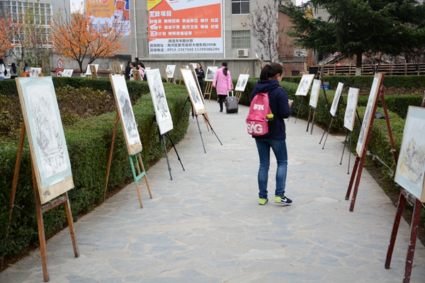 11月13日,我校1號教學(xué)樓前的通道兩側(cè)擺出了百余幅山水寫生國畫,引得過往師生紛紛駐足觀賞。這是由藝術(shù)學(xué)院舉辦的“秦嶺山水寫生掠影”作品展,匯集了美術(shù)學(xué)2013級105名學(xué)生的課程實踐作品。校黨委書記、校長劉建林,黨委副書記彭虎軍參觀了畫展并對我校學(xué)生的作品給予了高度評價。