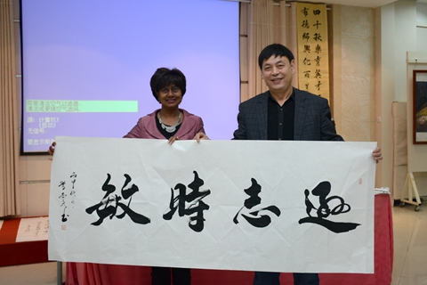 報告會結(jié)束后,劉寶盈陪同克里斯汀參觀了我校特色展廳。