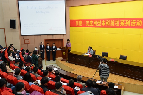 克里斯汀在報告中介紹了馬來西亞高等教育構(gòu)成體系、運作機制、分布情況、留學生教育和未來10年發(fā)展計劃等方面的情況,詳細介紹了吉隆坡建設(shè)大學的發(fā)展歷史、學科體系以及國際教育發(fā)展目標。克里斯汀說,馬來西亞高校學生中有數(shù)十萬名來自100多個國家的留學生,還有各種高等教育培訓機構(gòu)也有來自不同國家的交流學生。馬來西亞制訂了一系列政策支持高等教育國際化和學生藍圖遠景,吸引更多的留學生來馬來西亞學習交流,歡迎國外大學去馬來西亞建立分校或?qū)W院,或者在其他國家建立馬來西亞分校,加強與海外機構(gòu)之間的跨國教育合作,歡迎商洛學院師生去吉隆坡建設(shè)大學交流學習。