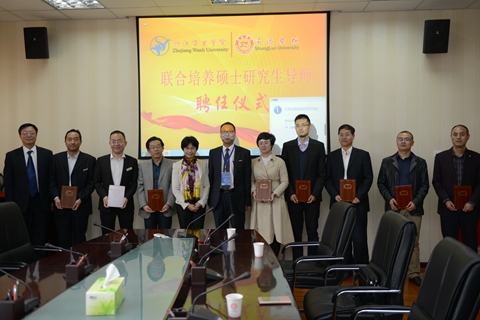 10月23日下午,我校與浙江萬里學(xué)院舉辦了“聯(lián)合培養(yǎng)研究生”碩士生導(dǎo)師聘任儀式。我校王新軍等5位教師受聘為浙江萬里學(xué)院碩士研究生導(dǎo)師。來自陜西森弗天然品有限公司、陜西天士力植物藥業(yè)有限公司的王軍等5位專家同時受聘為浙江萬里學(xué)院校外碩士研究生導(dǎo)師。副校長劉寶盈、浙江萬里學(xué)院副校長錢國英出席聘任儀式??萍继幪庨L李繼高主持聘任儀式。