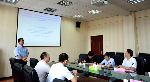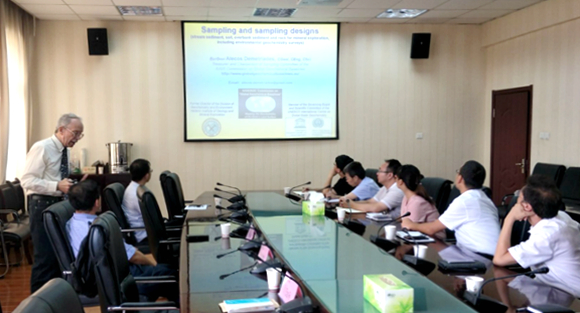 座談會后,Dr. Zhang Chaosheng以《大數(shù)據(jù)時代基于機(jī)器學(xué)習(xí)的地球化學(xué)變量的空間分析》為題作了學(xué)術(shù)報告,Prof. Alecos Demetriades以《采樣和采樣設(shè)計》《如何撰寫英文論文》為題作了兩場學(xué)術(shù)報告。報告后,地理專業(yè)教師們圍繞大數(shù)據(jù)處理、機(jī)器學(xué)習(xí)、空間變異、地球化學(xué)研究與采樣方法、論文寫作等方面與兩位專家進(jìn)行了深入交流,報告會氣氛活躍,效果良好。